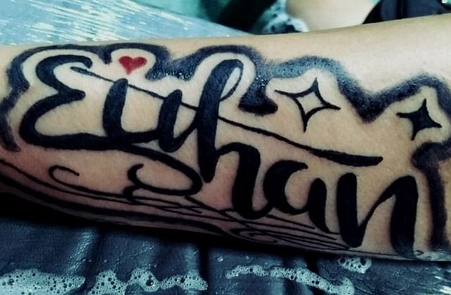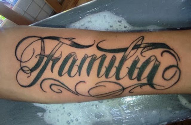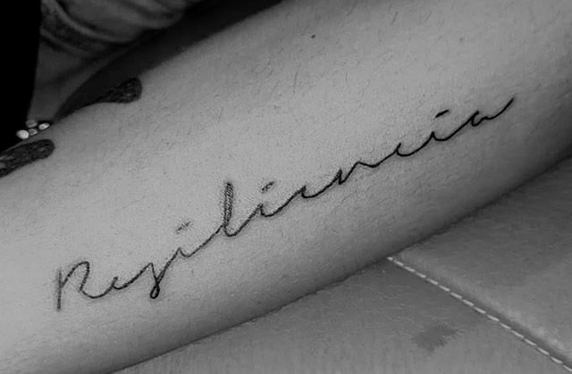 tatuajes de lettering personalizados, con fuentes tipográficas que expresan emociones, frases o nombres significativos. Trabajo desde estilos simples hasta diseños elaborados con sombreado o trazos decorativos.